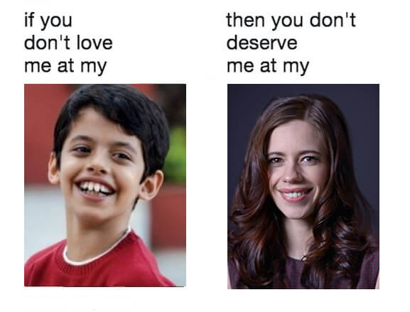 It goes like this – If you don’t love me at my (first image), then you don’t deserve me at my (second image).